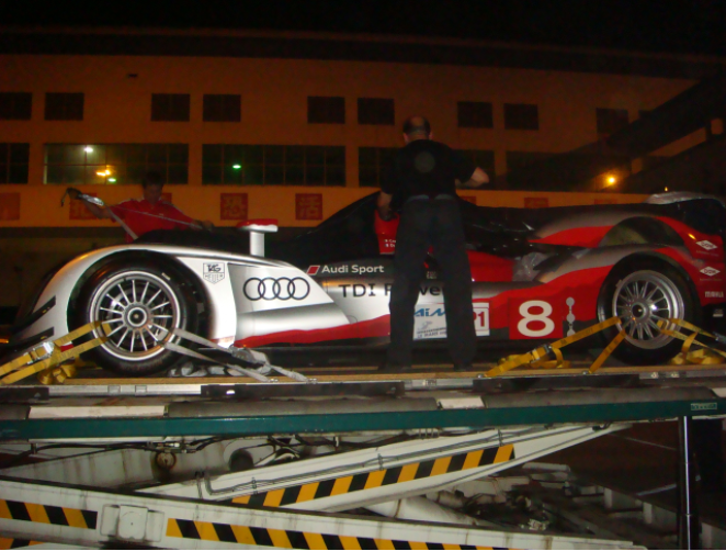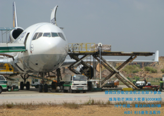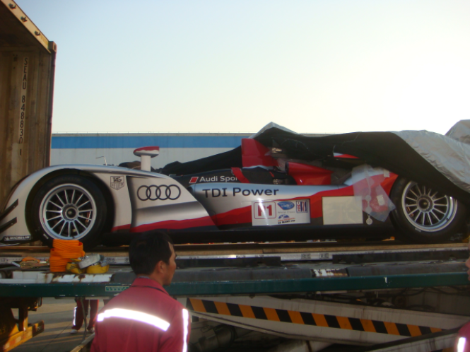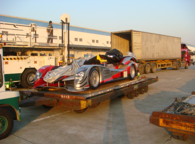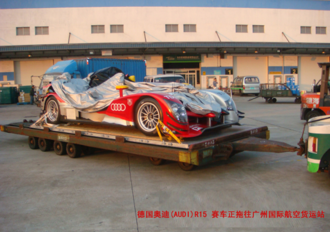 经过长达数月的激烈角逐,我司战胜了来自德国的世界最大的物流商,赢得了德国奥迪车队的独家物流承包权,2010年10月30日由我司承运的16个航空托盘,重达95吨的2辆德国奥迪(AUDI)R15赛车及108箱备件顺利运抵珠海国际赛车场,成为首批到达赛车场的参赛团队,11月7日世界三大汽车赛事之一的“勒芒洲际杯大奖赛1000公里赛”在珠海精彩落幕,11月9日,我司成功将上述货物报关并按计划空运回德国法兰克福机场。我司出色的工作赢得了一向以工作严谨著称的德国奥迪(AUDI)赛车团队的高度赞赏与肯定。